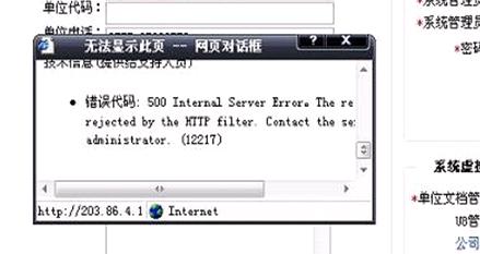 新建部门显示错误代码: 500 Internal Server Error。The request was rejected by the HTTP filter. Contact your ISA Server administrator.