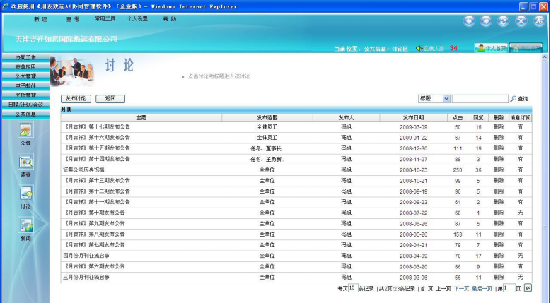 企业内刊《月吉祥》发布公告 除了企业文化内刊,吉祥如意的企业文化更多是建基于企业的发展。因此,吉祥如意在致远A6协同的单位文档中放入了公司文件格式、电子商务部知识库、业务部知识库,以及公司规章制度、电子商务部制度、业务部制度和客服部制度等内容,这样可以让新员工,在不熟悉企业规章管理制度和部门业务流程的时候,有一条便捷的通道可以自行学习,加快员工在企业的融入速度。同时,吉祥如意通过致远A6的讨论区,则进一步地“让员工的思想和认识与公司保持高度一致,同时也使员工对公司的发展目标和理想有更深刻的认同。”这不仅成为了企业对内宣传的窗口,更为企业文化的传承提供了一个正确的导向。