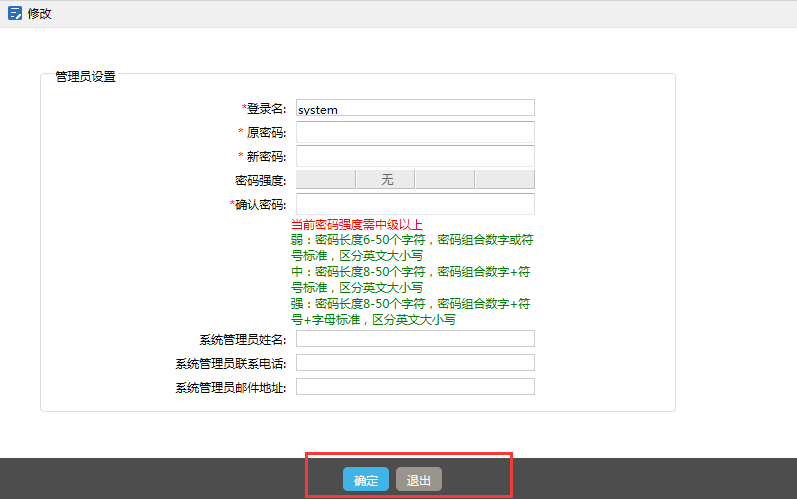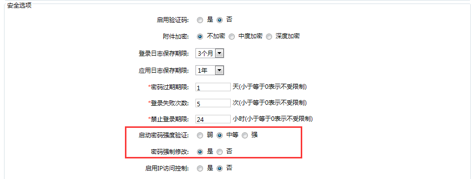 一、解决弱口令登录密码 1、增加密码强度验证功能。如果设置的密码不符合密码强度,则系统要求强制修改。 注意:此补丁包只适用于解决用户名+密码登录验证弱口令问题,不适用其他登录方式(AD/LDAP,身份认证狗等) (1)登录系统管理员账号,在“启动密码强度验证”中设置密码强度,默认是“中等” ![]() (2)在用户登录时会验证用户当前登录密码的强度,当密码强度小于系统设定的密码强度时,会提示用户修改密码,提示界面如下图所示 ![]() ![]() ![]() ![]() ![]() ![]() 高危操作:如果客户做了大量基于弱口令的二次开发且不愿改变的话,临时可以通过配置“插件参数设置”的webservice.weakpassword.enabled设置为1(允许)保持访问,但建议修改二开中的口令,否则需自行承担所引起的安全风险。 (2)点击“确定”按钮进入密码修改界面 二、二次开发安全设置 1、没有做二次开发的,打上补丁不需要做其他操作; 2、使用了Webservice进行二次开发,打上补丁,请使用SeeyonConfig配置工具,将“插件参数设置”: webservice.enabled 设置为1(启用) webservice.password 设置密码(不要使用弱口令) 3、客开的代码必须按照新的密码进行访问,否则无法调用 4、不能使用123456和空密码等弱口令,否则仍无法调用 5、如果需要更高的安全性,请将调用SOAP Webservice和单点登录的服务器IP地址加到“外部信任地址”中,并勾选“是否启用信任地址功能”,只允许指定IP调用。 请参照下图进行设置 2、增加密码过期时,密码是否需强制修改功能。 (1)登录系统管理员账号,设置“密码过期强制修改”,当选择为“是”时,密码过期以后,将提示用户“密码已过期,请及时修改” (4)当用户所修改的密码不符合当前系统设定的密码强度时,则不允许保存 (3)此时用户需进入密码修改页面进行密码修改 |