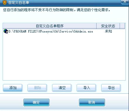 在瑞星杀毒软件的“详细设置”- “电脑防护”-“木马行为防御”中点击“现存有效规则0条,点击添加新规则到[行为分析白名单]”,在自定义白名单中将OAdmin.exe添加上即可