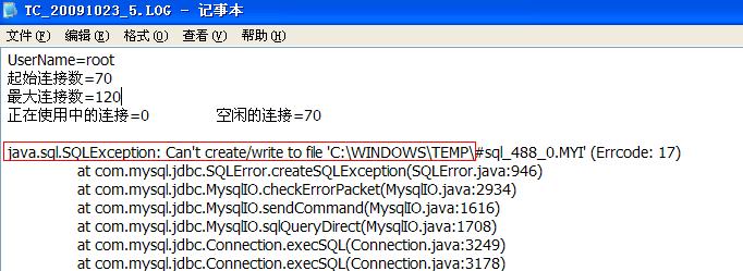OA服务突然无法启动,查看日志会显示C:WINDOWSTEMP下某个.MYI文件无法读写,如下图