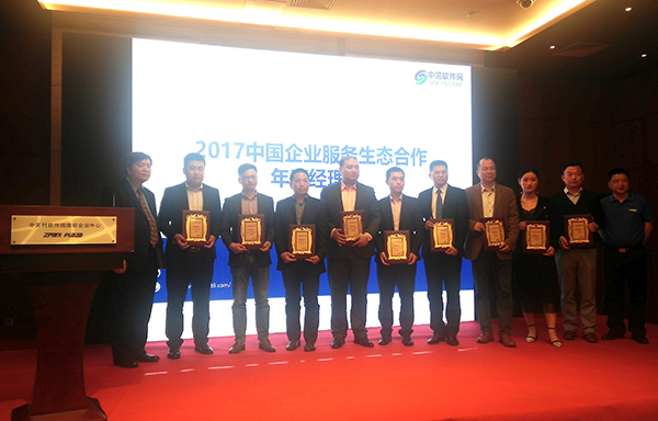 致远互联上海区副总经理张立江(左二)荣获“2017中国企业服务生态合作年度经理人”