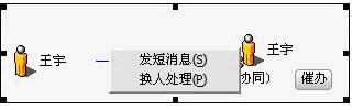 协同的管理者可以改变节点的处理人。如图,点击菜单项“换人处理”,弹出选人界面,选择某人代替原人员处理。
