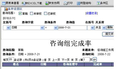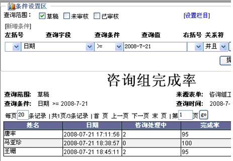致远软件里表单查询条件选择“等于”后查询不到记录,如果选择“大于等于”就可以查到