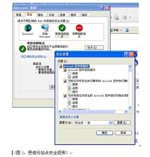 我们是将致远OA系统设置为受信任站点后再对受信任站点做的active控件启用,保证跟我们OA系统有关的控件可以正常使用,并没有设置Internet全部的自定义级别,所以您提的上网安全不存在。